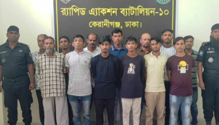 গ্রেফতার ব্যক্তিরা হলো– ইউসুফ গাজী (২৮), মোহাম্মদ ইউসুফ (৫৭), মো. পিন্টু মিয়া (৪০), মো. ডালিম (১৯), মো. পাভেল (১৯), মোহাম্মদ আলী (২৫), মো. সাব্বির (৬০), নাজির হোসেন (৪৮), মো. কামাল উদ্দিন (৫০), মো. বিল্লাল হোসেন (৪৫), মো. বিল্লাল হোসেন (২৮), মো. নাজির উদ্দিন ভূঁইয়া (৪৪) ও মো. রনি হোসেন (৪০)।
