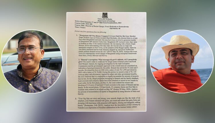 ঢাকা বিশ্ববিদ্যালয়ের সমাজবিজ্ঞান বিভাগের পরীক্ষায় ঝিনাইদহ-৪ আসনের সংসদ সদস্য আনোয়ারুল আজীম আনার হত্যাকাণ্ড এবং পুলিশের সাবেক মহাপরিদর্শক (আইজিপি) বেনজীর আহমেদের দুর্নীতি নিয়ে করা প্রশ্ন সামাজিক যোগাযোগ মাধ্যমে ভাইরাল হয়েছে। গতানুগতিক ধারার বাইরে এসে সাম্প্রতিক ইস্যু নিয়ে প্রশ্ন করায় প্রশংসায় ভাসছেন প্রশ্নপত্র তৈরি করা অধ্যাপক।