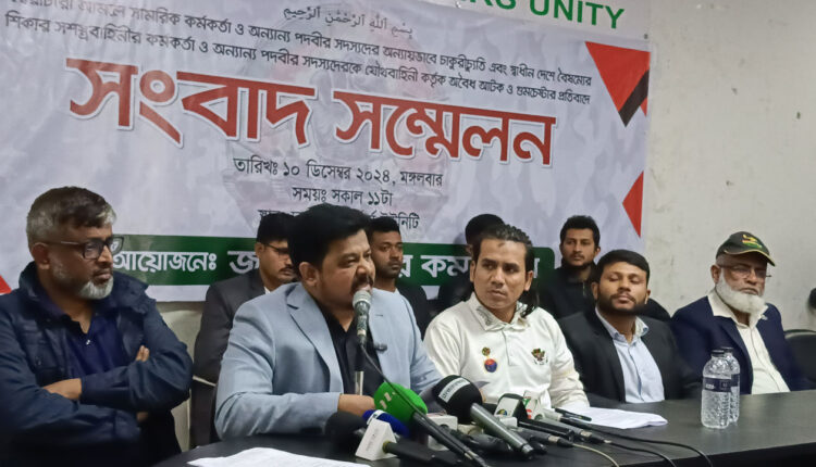 তিনি বলেন, আমরা এখানে একত্রিত হয়েছি সশস্ত্র বাহিনীর কর্মরত এবং অবসরপ্রাপ্ত সদস্যদের প্রতি গত ১৫ বছর ধরে সংঘটিত ধারাবাহিক অন্যায় আচরণ তুলে ধরতে। আমরা দেখেছি হাসিনা সরকারের শাসনামলে ডিজিএফআই, এনএসআই, এসবি এবং ডিবির মতো সংস্থাগুলোর মাধ্যমে নিবেদিতপ্রাণ সামরিক সদস্যদের প্রতি যে নির্যাতন, অপমান এবং দমন-পীড়ন চালানো হয়েছে, তা আমাদের নিরাপত্তা ব্যবস্থার জন্য ক্ষতিকর।