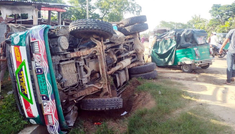স্থানীয় প্রত্যক্ষদর্শী আবু সাঈদ খোকন জানান, চিনকীরহাট এলাকায় একটি ব্যাটারিচালিত অটোরিকশাকে সাইড দিতে গিয়ে সিএনজিচালিত অটোরিকশাটি বিপরীতমুখী একটি বালুবোঝাই পিকআপের সামনে পড়ে। সংঘর্ষে অটোরিকশাটি দুমড়ে-মুচড়ে যায় এবং পিকআপটি সড়কের পাশে উল্টে পড়ে।