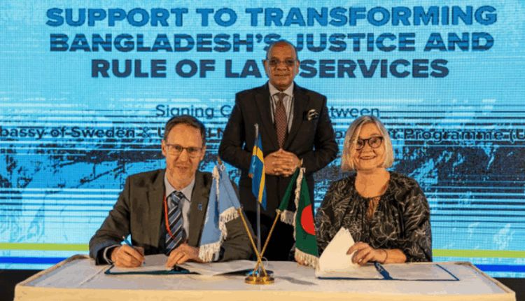 বাংলাদেশে সুইডেন দূতাবাস ও জাতিসংঘ উন্নয়ন কর্মসূচি (ইউএনডিপি) একটি চুক্তি স্বাক্ষর করেছে, যার মাধ্যমে দেশে চলমান বিচার ব্যবস্থার সংস্কারে তাদের সহায়তা অব্যাহত থাকবে।