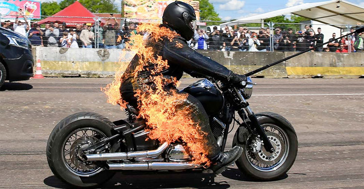 রেকর্ডের নেশা, গায়ে আগুন ধরিয়ে বাইক চালালেন তিনি