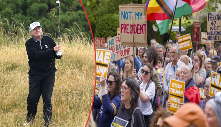 স্কটল্যান্ডে গলফ খেললেন ট্রাম্প, রাজপথে বিক্ষোভ