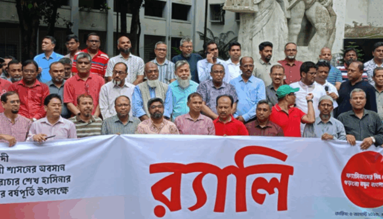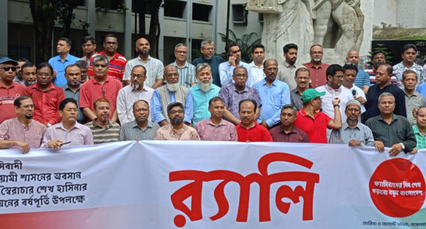 ঢাবির কলা অনুষদের ডিন অধ্যাপক ছিদ্দিকুর রহমান খান বলেন, যে লক্ষ্য নিয়ে জুলাইয়ে সহস্রাধিক মানুষ আত্মাহুতি দিয়েছে, তা এখনো পূর্ণ হয়নি। শহীদদের আকাঙ্ক্ষা পূরণের আগ পর্যন্ত আমাদের লড়াই অব্যাহত থাকবে।