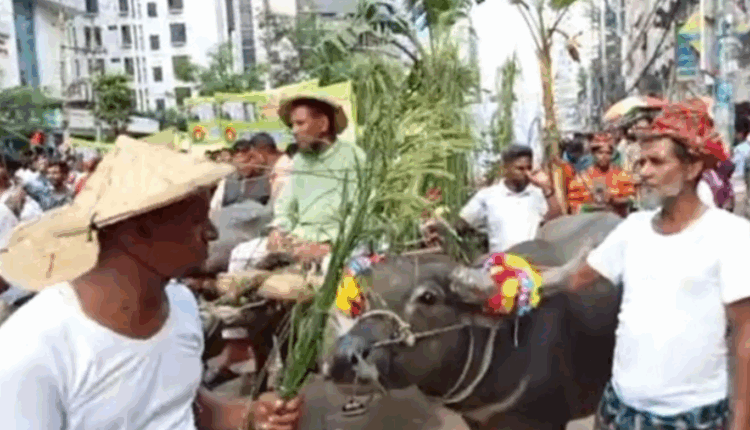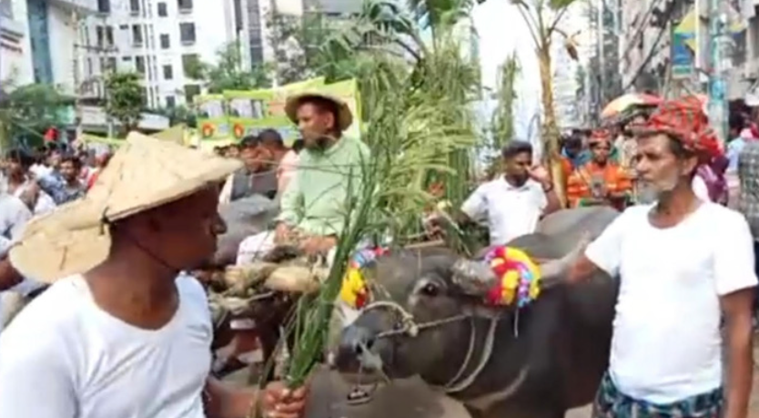 র্যালির পুরো পরিবেশে ছিল একধরনের উৎসবমুখরতা। গরুর গাড়িতে করে আসা সমর্থক, কৃষকের সাজে মানুষের স্লোগান, হাতের ধানের শীষ আর মুখে দেশপ্রেমের গান—সব মিলিয়ে রাজধানীর রাজপথ যেন হয়ে উঠেছিল এক অভিনব উৎসবের মঞ্চ।