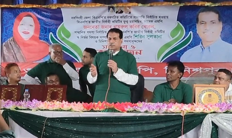 খায়রুল কবির খোকন নরসিংদী জেলা বিএনপির সভাপতি নির্বাচত হওয়ায় চিনিশপুর ইউনিয়নের উদ্যেগে আয়োজিত এক সংবর্ধনা ও বনভোজন অনুষ্ঠানে প্রধান অতিথির বক্তব্যে তিনি এ কথা বলেন।