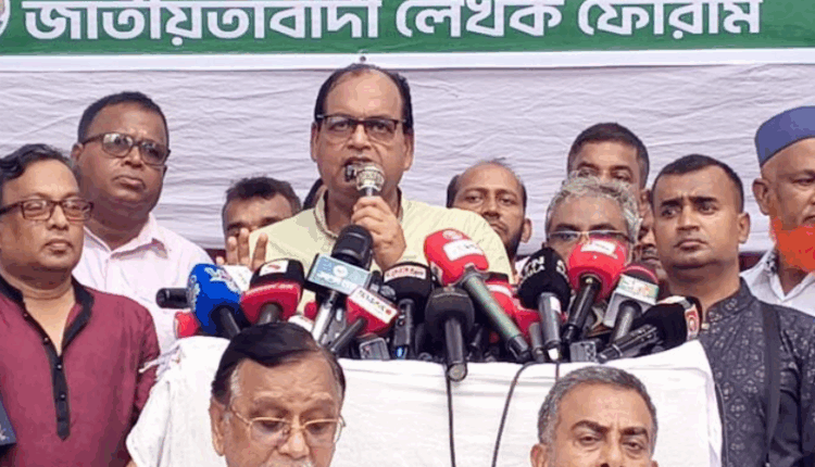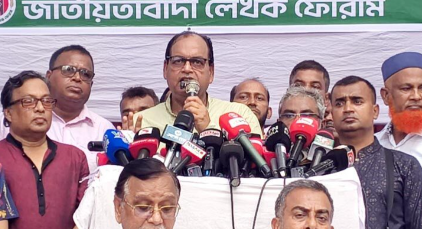 রোববার (২৮ সেপ্টেম্বর) জাতীয় প্রেস ক্লাবের সামনে জাতীয়তাবাদী লেখক ফোরামের উদ্যোগে আয়োজিত এক সমাবেশে প্রধান অতিথির বক্তব্যে তিনি এসব কথা বলেন।