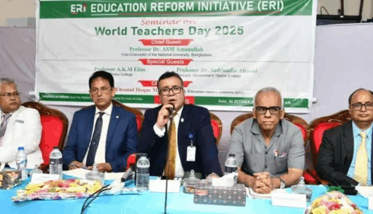 সোমবার (৬ অক্টোবর) রাজধানীর মগবাজারের এক সম্মেলন কক্ষে ‘বিশ্ব শিক্ষক দিবস’ উপলক্ষে আয়োজিত সেমিনারে প্রধান অতিথির বক্তব্যে তিনি এসব কথা বলেন। এডুকেশন রিফরম ইনিশিয়েটিভ (ইআরআই) এই সেমিনারের আয়োজন করে।