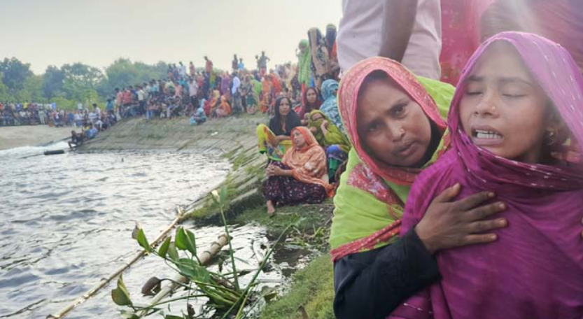 ঘটনাস্থলে এলাকাবাসী ও স্বজনদের কান্নায় পরিবেশ ভারি হয়ে ওঠে।