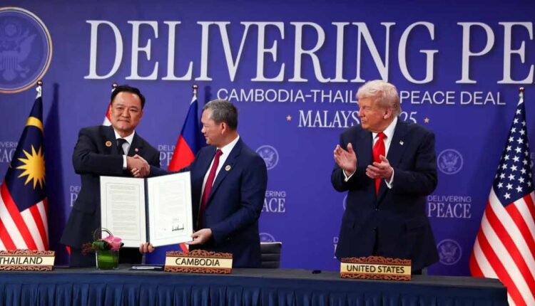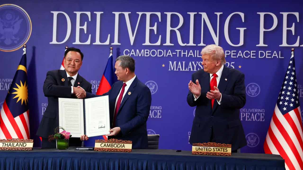 যুক্তরাষ্ট্রের প্রেসিডেন্ট ডোনাল্ড ট্রাম্পের উপস্থিতিতে যুদ্ধবিরতি চুক্তিতে সই করেছে দক্ষিণ-পূর্ব এশিয়ার দুই দেশ থাইল্যান্ড ও কম্বোডিয়া। মালয়েশিয়ায় সই হওয়া এ চুক্তিতে স্বাক্ষর করেন ট্রাস্প নিজেও।