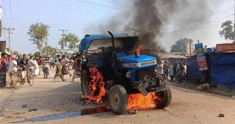 নওগাঁয় ট্রাক্টরেরচাপায় স্কুলছাত্র নিহত, ট্রাক্টরটিতে আগুন ধরিয়ে দেয় বিক্ষুব্ধ জনতা