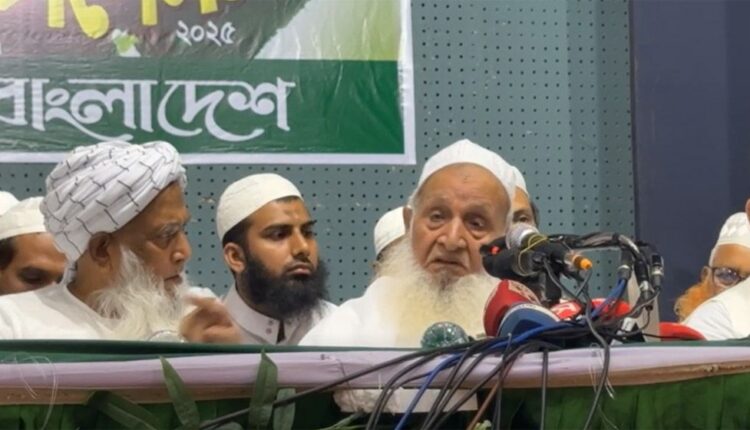 তিনি বলেছেন, আমি অতীতেও বহুবার এই আহ্বান জানিয়েছি। কিন্তু দুঃখের বিষয়— এখনো সেই ঐক্যের পরিবেশ তৈরি হয়নি। তাই আমার পরামর্শ হলো— ইসলাম ও ইসলামের মূলধারা ক্ষতিগ্রস্ত হয় এমন কোনো সিদ্ধান্ত কখনো গ্রহণ করবেন না। আমাদের দেশের মসজিদ, মাদ্রাসা, দাওয়াত-তাবলিগ, তাসাউফ ও সুলুকের কাজ যেন কোনো বিদেশি চাপ বা অভ্যন্তরীণ বিভাজনের কারণে ক্ষতিগ্রস্ত না হয়— এ বিষয়ে সবাইকে সজাগ থাকতে হবে।
