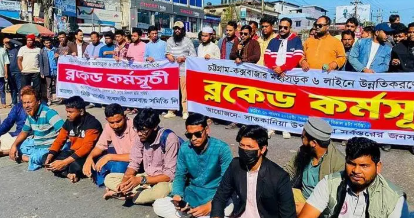 ছয় লেন করার দাবিতে চট্টগ্রাম-কক্সবাজার মহাসড়ক অবরোধ করে বিক্ষোভ