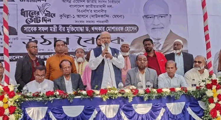 বিএনপির স্থায়ী কমিটির সদস্য ও কুমিল্লা-১ (দাউদকান্দি ও মেঘনা) আসনের প্রার্থী ড. খন্দকার মোশাররফ হোসেন বলেছেন, ‘বিএনপি এই দেশের মাটি ও মানুষের দল। দেশের মানুষকে বিপদে ফেলে রেখে বিএনপি নেতারা কখনো দেশ ছেড়ে পালিয়ে যায়নি। বিদেশে আমাদের কোনো ঠিকানা নেই, বন্ধু আছে, প্রভু নেই। বিএনপি এই দেশের জনগণকে মনে-প্রাণে ভালোবাসে। এই দল ক্ষমতায় থাকলে মানুষ নিরাপদ থাকে, ভালো থাকে।’