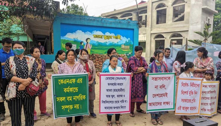 কেএনএফের বিরুদ্ধে নিন্দা জানিয়ে মানববন্ধন