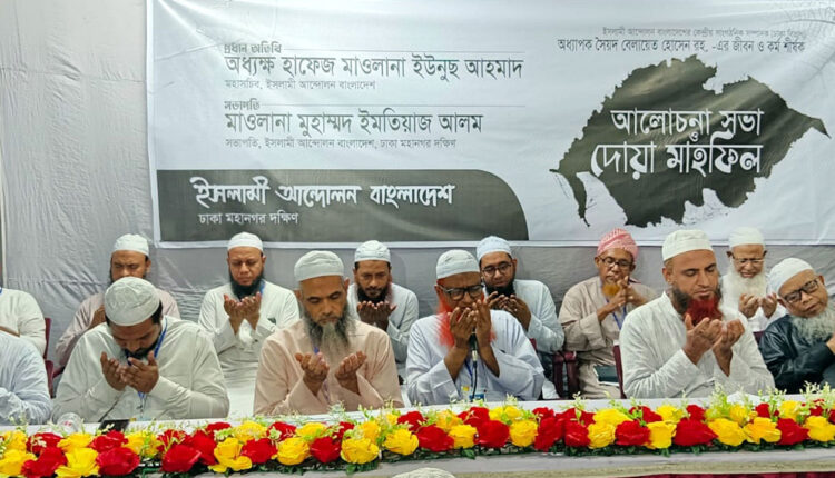 রোববার (৯ জুন) বিকেলে পুরানা পল্টনে আইএবি মিলনায়তনে ইসলামী আন্দোলন বাংলাদেশ ঢাকা মহানগর দক্ষিণের উদ্যোগে ইসলামী আন্দোলনের ঢাকা বিভাগীয় সাংগঠনিক সম্পাদক অধ্যাপক সৈয়দ বেলায়েত হোসেন স্মরণে অনুষ্ঠিত আলোচনা সভা ও দোয়া মাহফিলে প্রধান অতিথির বক্তব্যে তিনি এসব কথা বলেন।