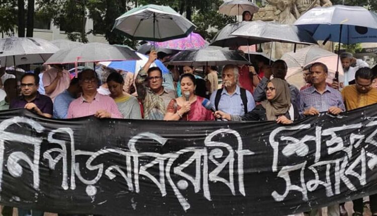 শিক্ষার্থীদের ওপর হামলা-মামলা ও আটক শিক্ষার্থীদের মুক্তির দাবিতে শিক্ষকদের সমাবেশ