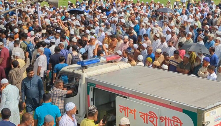রোববার (৬ অক্টোবর) সকাল ১০টার দিকে মুন্সীগঞ্জের শ্রীনগর উপজেলা স্টেডিয়ামে হাজারো মানুষের উপস্থিতে জানাজার নামাজ অনুষ্ঠিত হয়।