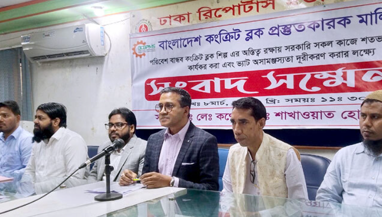 শনিবার (৮ মার্চ) রাজধানীর ঢাকা রিপোর্টার্স ইউনিটিতে (ডিআরইউ) আয়োজিত এক সংবাদ সম্মেলনে এসব দাবি তুলে ধরে বাংলাদেশ কংক্রিট ব্লক প্রস্তুতকারক মালিক সমিতি। এসময় উপস্থিত ছিলেন সমিতির সভাপতি লে. কর্নেল (অব.) মো. শাখাওয়াত হোসেন, সাধারণ সম্পাদক মো. মুস্তাফিজুর রহমান, সহ-সভাপতি দেলোয়ার হোসেন, মনির চৌধুরী, যুগ্ম সাধারণ সম্পাদক আহসান হাবিব প্রমুখ।