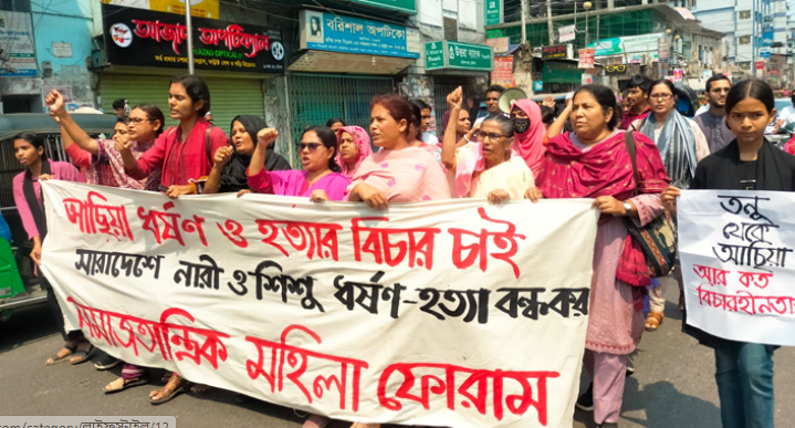 মাগুরার সেই শিশু ধর্ষণ ও হত্যার বিচারের দাবিতে বরিশালে বিক্ষোভ মিছিল ও সমাবেশ অনুষ্ঠিত হয়েছে। শুক্রবার (১৪ মার্চ) বেলা ১১টায় সমাজতান্ত্রিক মহিলা ফোরাম বরিশাল জেলা শাখার উদ্যোগে এ কর্মসূচি পালিত হয়।