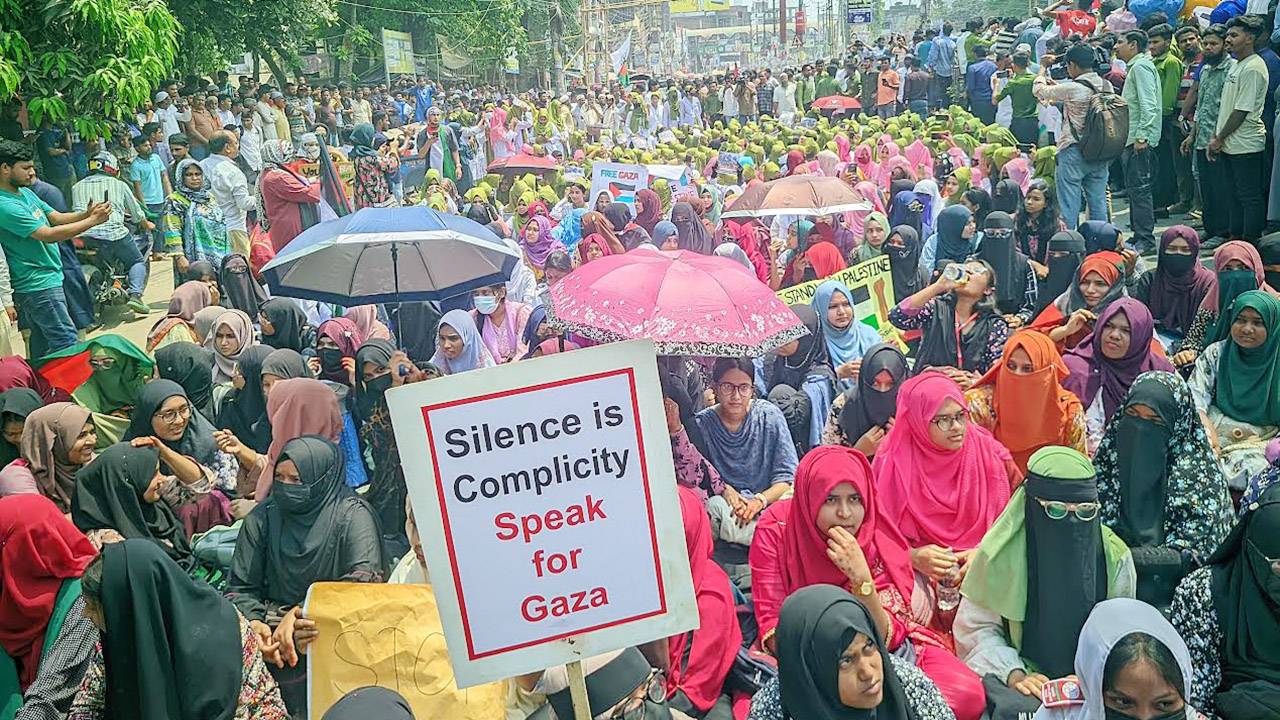 এভাবেই কথাগুলো বলছিলেন কলেজপড়ুয়া রুম্মন ইসলাম। ফিলিস্তিনের গাজায় বর্বরোচিত ইসরায়েলি গণহত্যার প্রতিবাদ জানাতে রংপুর টাউন হল চত্বরে মিছিলে অংশ নেন এই শিক্ষার্থী। এ সময় তার মাথায় বাঁধা ছিল ফিলিস্তিনের পতাকা আর হাতে ‘ফ্রি গাজা-ফ্রি প্যালেস্টাইন’ লেখা সম্বলিত প্ল্যাকার্ড।