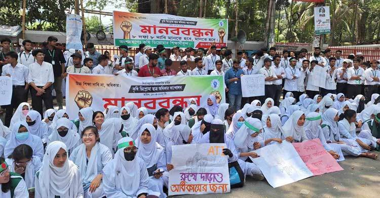 ৮ দফা দাবি জানিয়ে কৃষি ডিপ্লোমা শিক্ষার্থীদের মানববন্ধন
