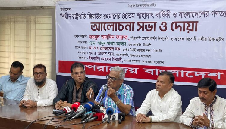 সোমবার (২ জুন) জাতীয় প্রেস ক্লাবে অপরাজেয় বাংলাদেশ আয়োজিত শহীদ রাষ্ট্রপতি জিয়াউর রহমানের ৪৪তম শাহাদাত বার্ষিকী ও বাংলাদেশের গণতন্ত্র শীর্ষক আলোচনা সভায় তিনি এসব কথা বলেন।