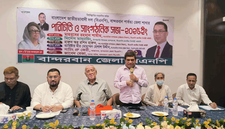 সোমবার (২১ জুলাই) দুপুরে বান্দরবান সদরস্থ ডি’মোর হোটেলের কনফারেন্স হলে বান্দরবান পার্বত্য জেলা বিএনপির পরিচিতি ও সাংগঠনিক সভায় প্রধান অতিথির বক্তব্যে এসব কথা বলেন।