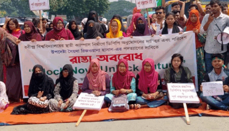 স্থায়ী ক্যাম্পাস প্রকল্প অনুমোদনের দাবিতে রাস্তায় ক্লাস ঘোষণা রবীন্দ্র বিশ্ববিদ্যালয়ের শিক্ষার্থীদের
