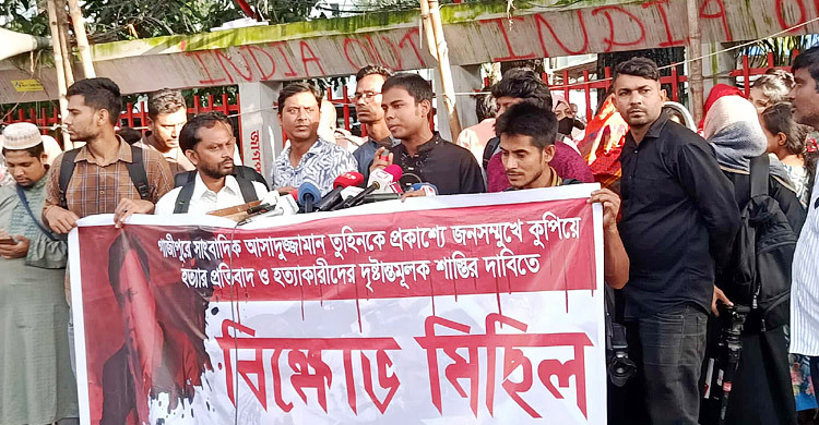 সাংবাদিক আসাদুজ্জামান তুহিনকে প্রকাশ্যে কুপিয়ে হত্যার প্রতিবাদে প্রেসক্লাবে বিক্ষোভ