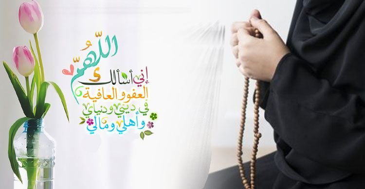 উচ্চারণ : ‘আল্লাহুম্মা ইন্নি আসআলুকাল আফওয়া ওয়াল আফিয়াতা ফিদ্দুনইয়া ওয়াল আখিরাতি। আল্লাহুম্মা ইন্নি আসআলুকাল আফওয়া ওয়াল আফিয়াতা ফি দ্বীনী ওয়া দুনইয়াইয়া, ওয়া আহলি ওয়া মালি। আল্লাহুম্মাসতুর আওরাতি ওয়া আমিন রাওআতি। আল্লাহুম্মাহফাজনি মিম্বাইনি ইয়াদাইয়্যা ওয়া মিন খালফি ওয়া আন ইয়ামিনি ওয়া শিমালি ওয়া মিন ফাওকি। ওয়া আউজু বিআজামাতিকা আন উগতালা মিন তাহতি।’