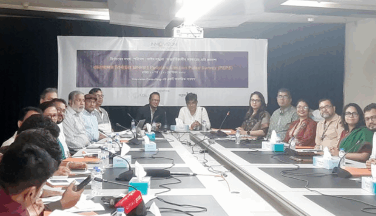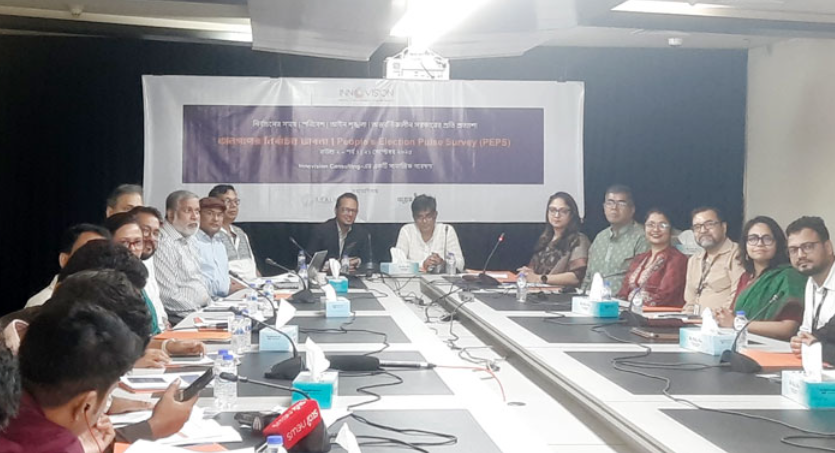 রোববার (২১ সেপ্টেম্বর) রাজধানীর কারওয়ান বাজারে দ্য ডেইলি স্টার ভবনের আজিমুর রহমান কনফারেন্স হলে ইনোভিশন কনসাল্টিং ‘জনগণের নির্বাচন পালস সমীক্ষা, রাউন্ড ২’ এর প্রথম প্রতিবেদনের ফলাফল প্রকাশ করেছে।