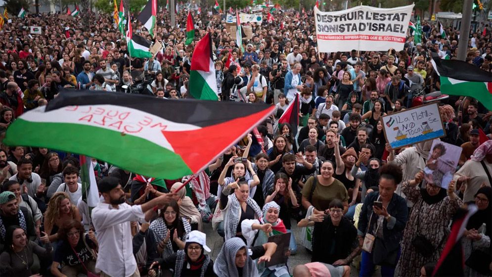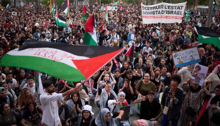 গাজায় ইসরাইলি আগ্রাসনের প্রতিবাদে বিক্ষোভে উত্তাল বার্সেলোনা