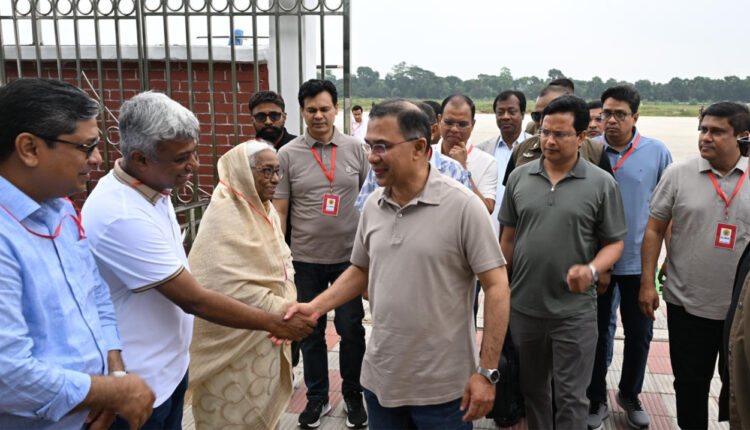 প্রধানমন্ত্রীর আগমনকে কেন্দ্র করে সকাল থেকেই বিমানবন্দর এলাকা ও শহরের গুরুত্বপূর্ণ সড়কগুলোতে উৎসবমুখর পরিবেশ তৈরি হয়। হাজার হাজার নেতাকর্মী, সমর্থক এবং সাধারণ মানুষ তাকে স্বাগত জানাতে রাস্তায় অবস্থান নেন। দলীয় পতাকা, ব্যানার ও স্লোগানে মুখরিত হয়ে ওঠে পুরো এলাকা।